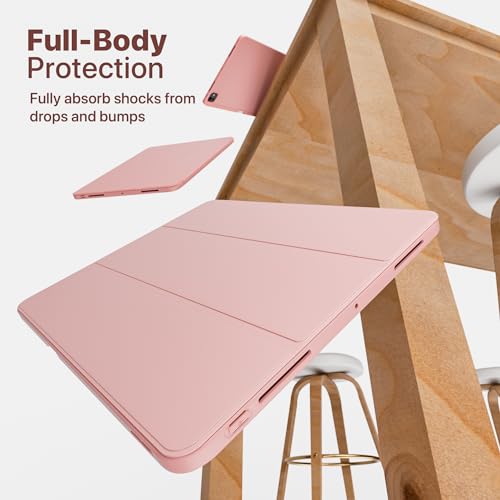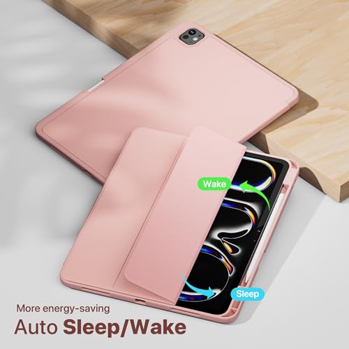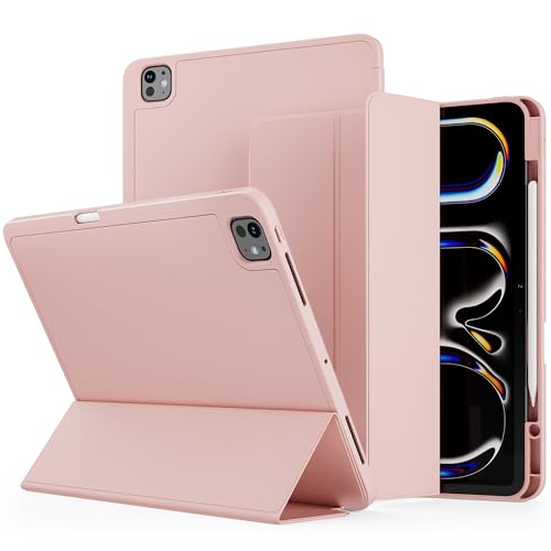 VAKS - VAKS for iPad Pro 13 inch Case M4 2024 7th Generation with Pencil Holder, Trifold Stand Smart Cover Auto Wake/Sleep, Supports Apple Pencil 2 / Pro, Soft TPU Back, Pink
