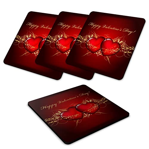 Generic - قواعد أكواب خشبية مربعة بطابع عيد الحب، (9.5 سم، 4 قطع، VC-02)