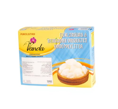 - Enjoy authentic Asian taste with Vanda White Prawn Crackers - Vanda White Prawn Crackers, the perfect choice for snack and light appetizers. These crisp are one of the most famous Asian foods, which are light and delicious crisp and rich shrimp flavor that adds to any meal. You can fry or roast them to crispy and light like potato chips, serve beside rice, sea-dishes, or snack any time of day. Made with the finest starch and natural shrimp extract to give you authentic taste and excellent quality in each bite.