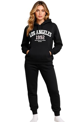 VNL by Vanilla - Vanilla Vintage Style Hoodie and Jogger Set, Black Cotton Blend Sweatsuit, Casual Streetwear Athletic Loungewear Code 3426