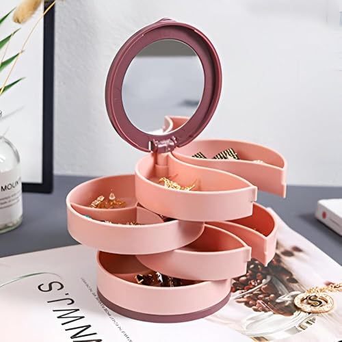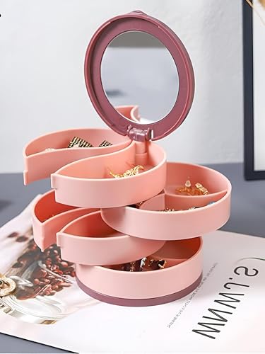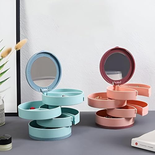 - Elegant 4-layer rotating jewelry box with reflective lid and compact design, perfect for organizing accessories and cosmetics while saving space on your vanity.