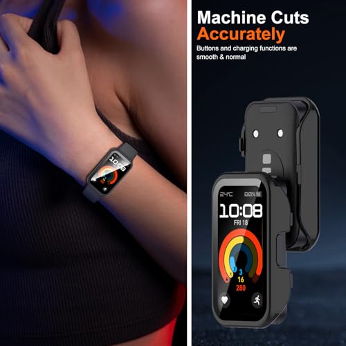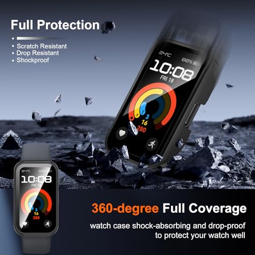 - الموديل المتوافق -- الجراب الكامل متوافق مع ساعة هواوي باند 10/باند 9/باند 8، مثالي لساعتك. جراب من البولي كربونات المتين + زجاج مقوى مع شاشة حماية، يغطي الحواف الأمامية والمنحنية بالكامل لموبايل جالاكسي فيت 3، مما يضمن ملاءمة جيدة.