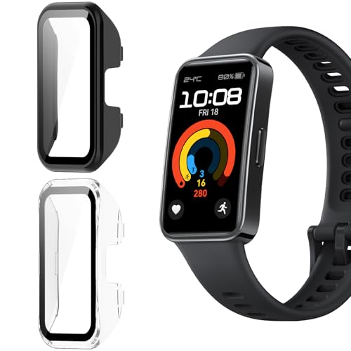 Vanrain - جراب حماية لجهاز هواوي باند 10/باند 9/8 من قطعتين بتغطية كاملة مضادة للخدش ومضادة للصدمات مع شاشة حماية من الزجاج المقوى بدرجة صلابة عالية الوضوح من فانرين، شفاف+ أسود