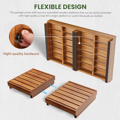 - مصنوعة من خشب الأكاسيا الطبيعي: مصنوعة من خشب الأكاسيا الفاخر، وتتميز المنصة بأنها مقاومة للماء والخدش لضمان المتانة والاستخدام طول الأمد. يعزز السطح المضلع تدفق الهواء وتصريف الماء، مما يقلل ويمنع تراكم الرطوبة ويجعلها مناسبة للاستخدام الداخلي والخارجي.