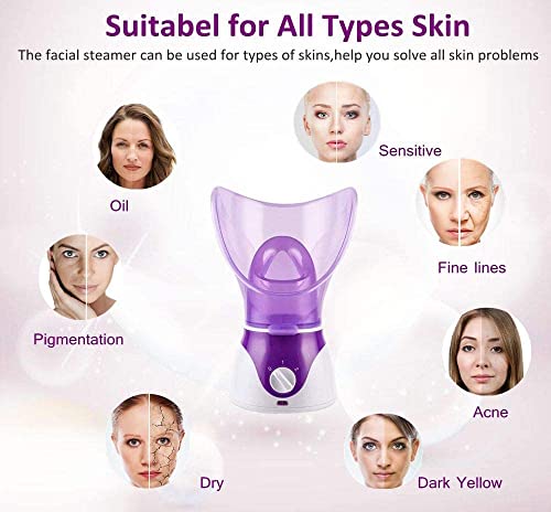 - MULTIFUNCTIONAL FACE STEAM The facial steam keys Spa Home to make you enjoy facial spa at home every day. Facial treatment can help you clear pores effectively, purify and whiten the skin, deepen hydration, inhibit blackheads and acne, promote blood circulation, increase skin elasticity, and make you look younger and more beautiful