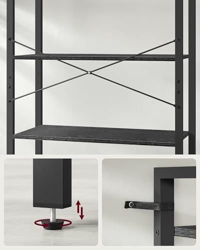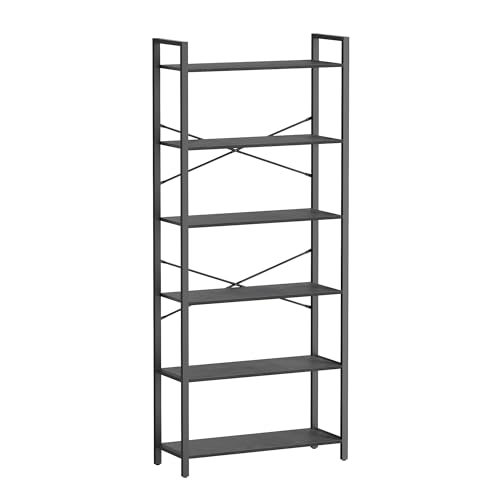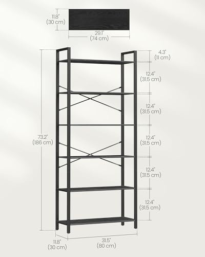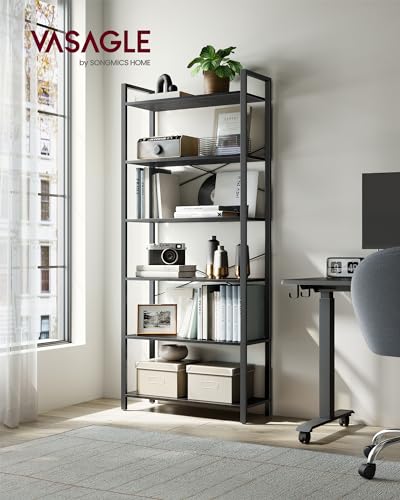 VASAGLE - VASAGLE 6 Tier Bookcase, Free Standing Shelf with Steel Frame, Freestanding Shelf, Living Room, Bedroom, Office, 30 x 80 x 186 cm, Industrial Design, Black Ebony-Black Ink LLS082B56