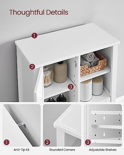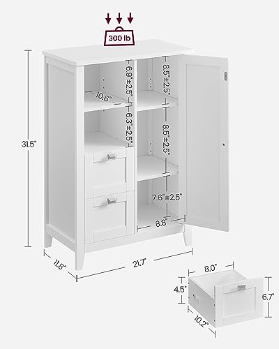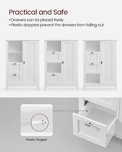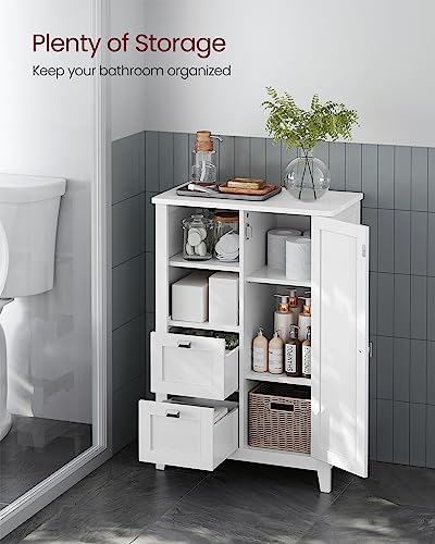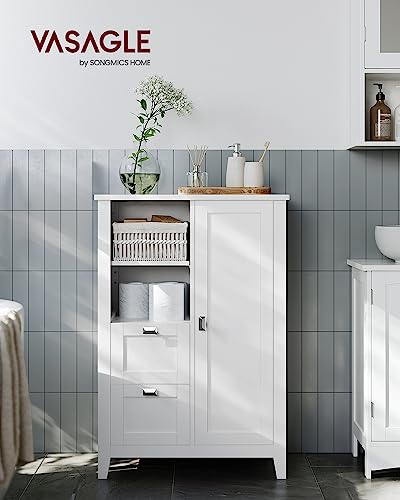 VASAGLE - *** فاساجيل خزانة تخزين ارضية الحمام، خزانة حمام قائمة بذاتها، خزانة مطبخ، مع مساحة مفتوحة، درجين، ارفف قابلة للتعديل، 11.8 × 21.7 × 31.5 انش، ابيض UBBC543P31
