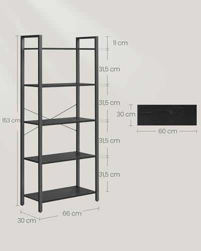 - 【WHAT YOU GET】A 5-tier book shelf measuring 30 x 66 x 153 cm from VASAGLE, an industrial storage solution and a great way to elevate your furnishing to the next level
