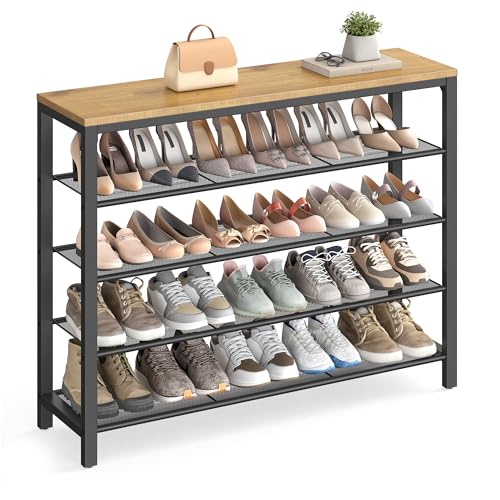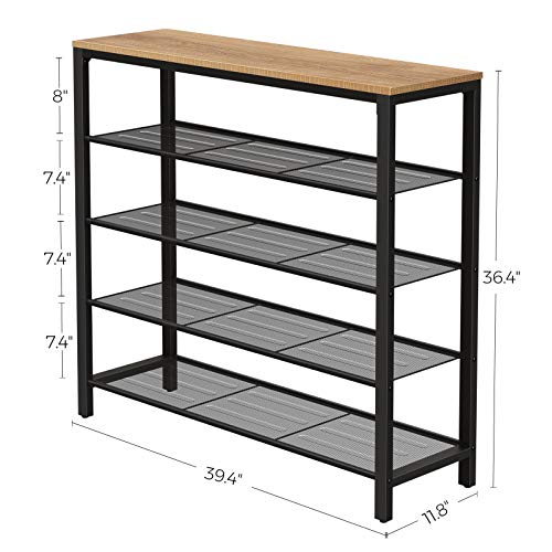 - [Strong Design] 4 open shelves with dense steel mesh offer plenty of space for your shoes; the eye-catching hazelnut brown surface welcomes bags, keys, picture frames, or a bouquet of roses (top surface holds up to 22 lb, shoe shelves up to 11 lb each)