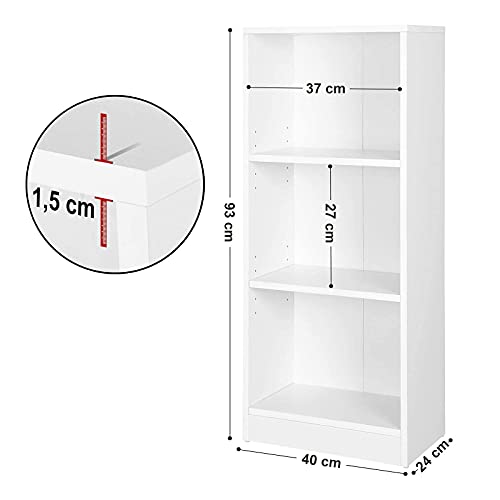 VASAGLE - VASAGLE LBC103W Bookcase with 3 Compartments, Standing Shelving Unit with Height-Adjustable Shelves for Living Room, Children's Room, Office, 24 x 40 x 93 cm, White