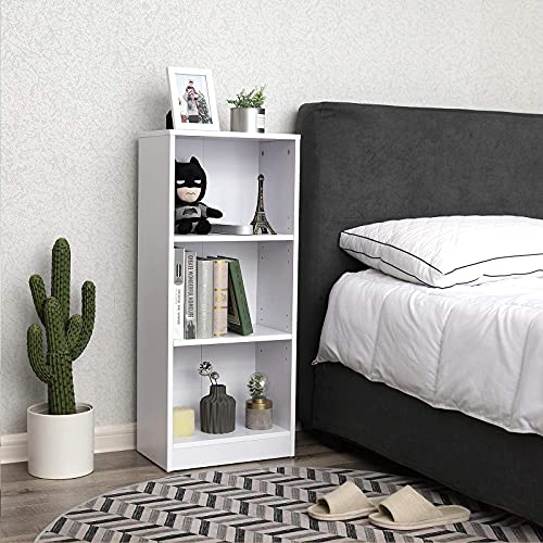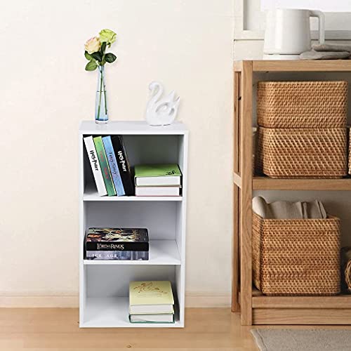 - WHAT YOU GET A white standing shelf with 3 compartments that fits perfectly into small spaces. This shelf can be used vertically or horizontally. So treat yourself to this bookcase and create additional storage space in your home