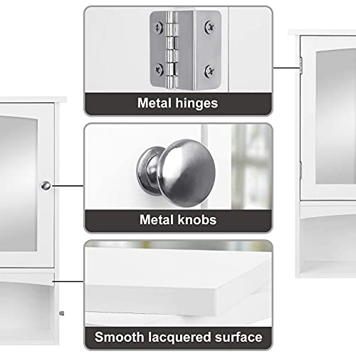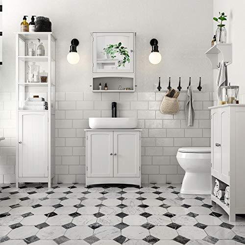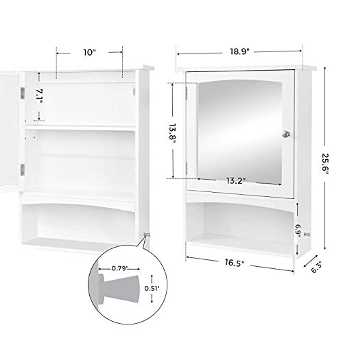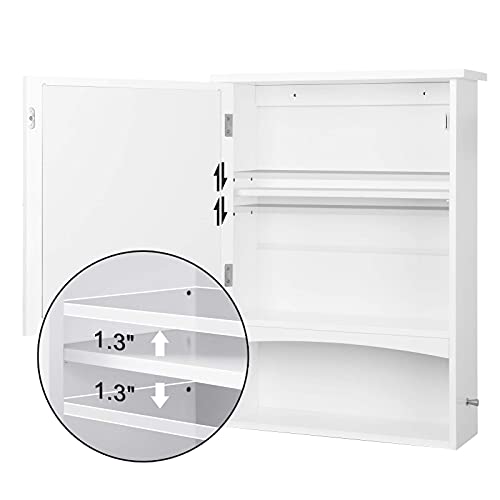 VASAGLE - VASAGLE Mirror Cabinet, Bathroom Wall Storage Organizer with Adjustable Shelf, Medicine Cupboard, 18.9 x 6.3 x 25.6 Inches, White