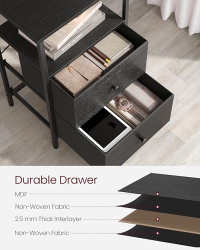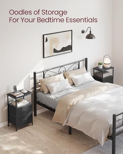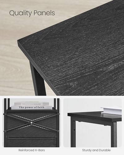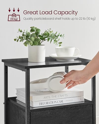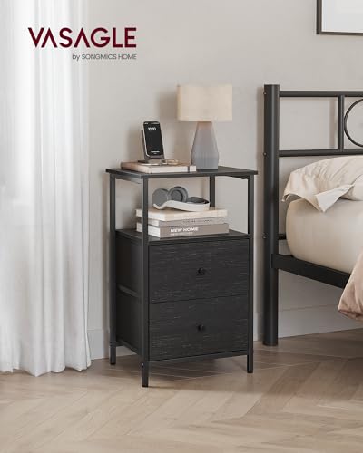 VASAGLE - طاولة جانبية بدرجين قماشيين بطول 61 سم مع رف تخزين لغرفة المعيشة وغرفة النوم من فاساجيل، لون أسود رمادي، ULGS025B21، B0CB18WW2M
