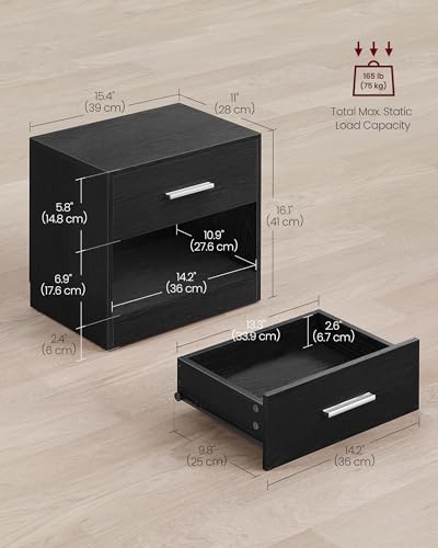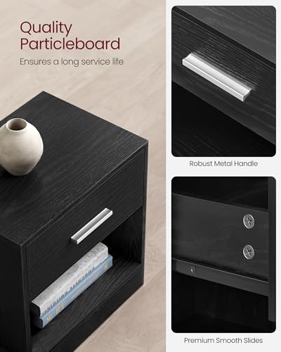VASAGLE - VASAGLE Nightstand, Side Table with Drawer and Shelf, Bedside Table, End Table with Open Compartment, for Bedroom, Living Room, Ink Black LET619T56