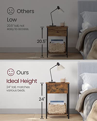 VASAGLE - VASAGLE Nightstand, Side Table with Fabric Drawer, 24-Inch Tall End Table with Storage Shelf, Bedroom, Rustic Brown and Black ULGS021B01