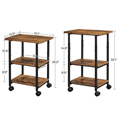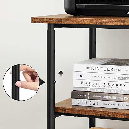 VASAGLE - فاساجيل حامل طابعة، عربة الة من 3 طبقات مع عجلات وسطح طاولة قابل للتعديل، رف تخزين شديد التحمل للمكتب والمنزل، بني ريفي + اسود