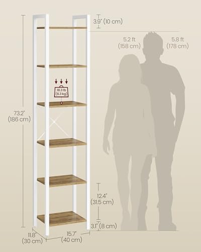 VASAGLE - رف كتب طويل، خزانة كتب ضيقة بلون بني دافئ موديل ULLS101K02 من فاساجيل