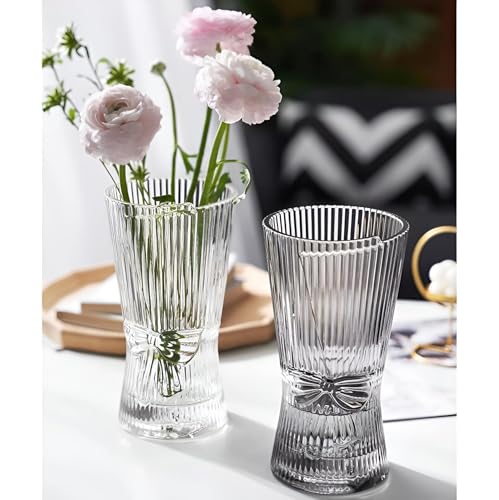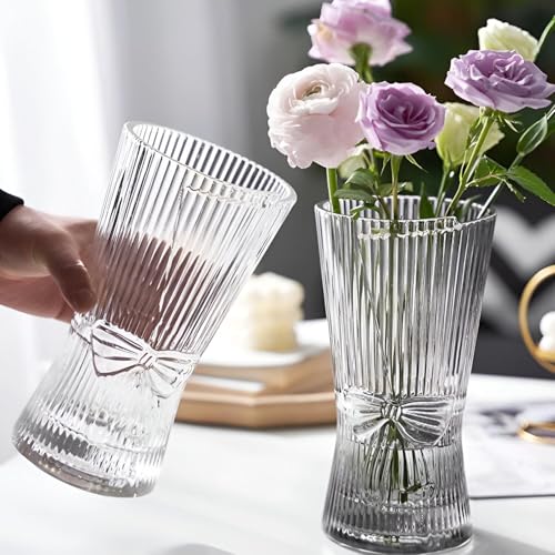 Generic - Vase Flower - Elegant Glass Vase - Sparkling glass vase with a raised pattern inspired by a tie, ideal for modern offices, tables, and living rooms, suitable for weddings, home decoration, and