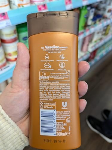 - لوشن الجسم بالكاكاو راديانت للعناية المركزة من فازلين، يحافظ على ترطيب البشرة لمدة 3 أسابيع (بناءً على دراسة سريرية للعلاج لمدة 4 أسابيع)