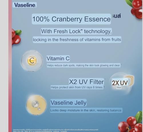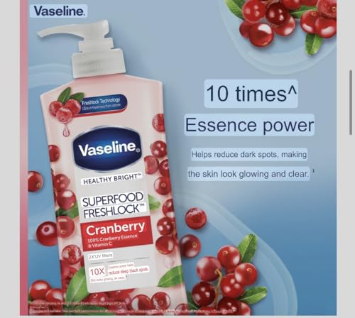 - فازلين هيلثي برايت سوبرفود فريش لوك بالتوت البري، لأن فازلين تؤمن بأن البشرة الجميلة والصحية تمنحك الثقة لتعيشي حياتك بأجمل صورها. لذلك، اخترعنا تقنية سوبر فود فريش لوك التوت البري لجعل البشرة تبدو أكثر إشراقًا مع تركيبة مثبتة سريريًا مكونة من 100 خلاصة من التوت البري مستخرجة من الطبيعة.