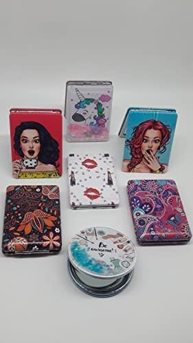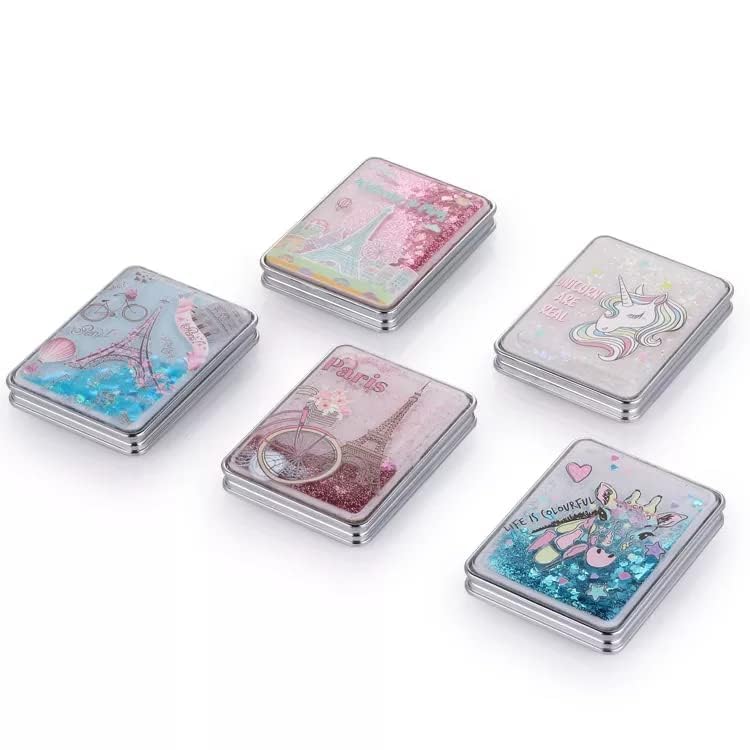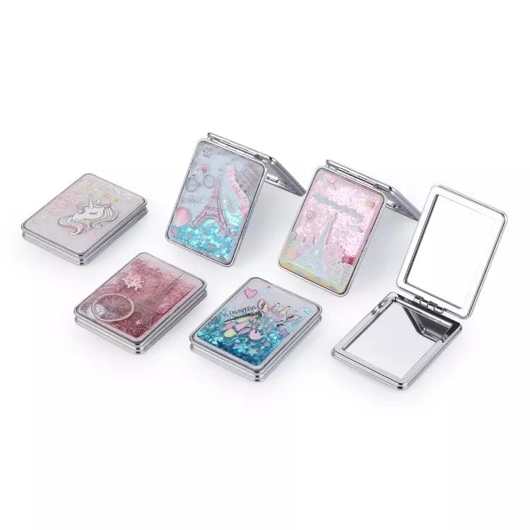 Vastra - Vastra Makeup Mirror Mini Portable Double-Sided Magnifying Handheld Mirror Dream Quicksand Glitter Mirror Folding Mirror for Purses and Travel