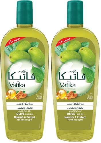 Vatika - زيت شعر غني بمستخلص طبيعي من زيت الزيتون واللوز مع فيتامين اي لتغذية وحماية جميع أنواع الشعر من فاتيكا (180 مل) (قطعتان داخل العبوة)