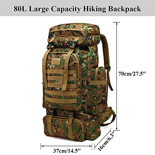 Vaupan - Hiking Backpack, 80L Camping Backpack with Rain Cover, Waterproof Outdoor Sport Travel Daypack Molle Rucksack for Men Women