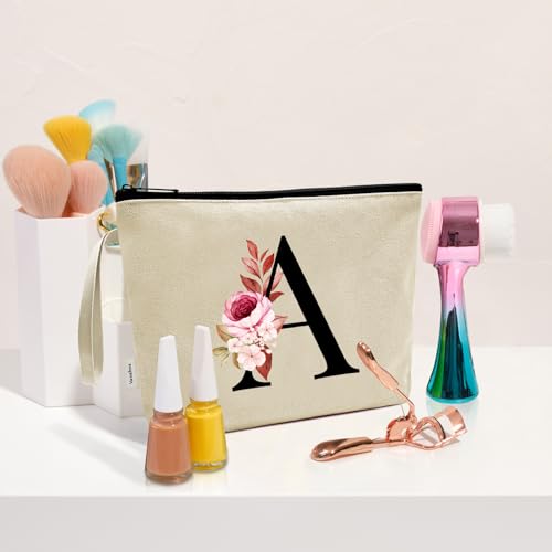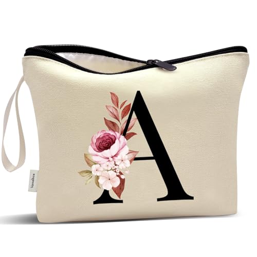 Vavabox - Vavabox A-Z Personalized Makeup Bag, Birthday Gifts for Women Mom, Gifts for Best Friend, Bride Bridesmaid Cosmetic bag, Yellow, A