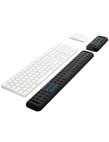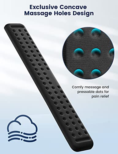 - 【فتحات تدليك بتصميم مريح】تتميز وسادة دعم المعصم أثناء استخدام الماوس بتصميم مبتكر ومريح بفتحات، تناسب المعصم وراحة اليد بشكل مثالي، مزودة بالعديد من فتحات التدليك بالإضافة إلى اثنين من الأخاديد على شكل موجة على وسادة المعصم للكيبورد، ستشعر براحة فائقة عند فرك معصمك وراحة يدك بها.