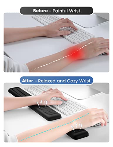 VAYDEER - مجموعة وسادة مسند معصم للكيبورد والماوس للألعاب، وسادة مسند مريحة من فوم الميموري للكتابة والحفاظ على راحة اليد وتخفيف آلام المعصم وعلاجه للكمبيوتر واللاب توب وجهاز ماك من فايدير (44 سم، أسود)