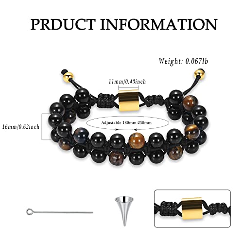 VCCWYQK - Triple Protection Bracelet, Genuine Tigers Eye Urn Bracelet Men Women, Cremation Jewelry Urn Bracelet for Ashes, Stainless Steel, no gemstone