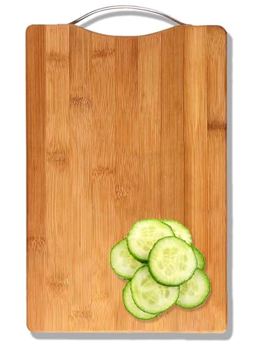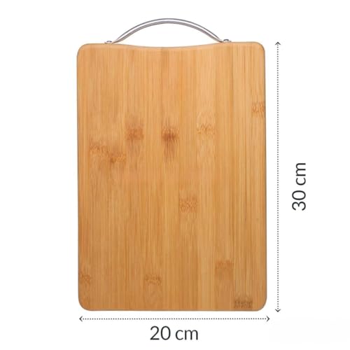 VDNSI - لوح تقطيع خشبي من الخيزران للمطبخ بسطح مضاد للبكتيريا مع مقبض ستيل، لوح تقطيع الخضروات للمطبخ، لوح تقطيع امن للغسل في غسالة الصحون (لوح تقطيع ستيل، 30 × 20)
