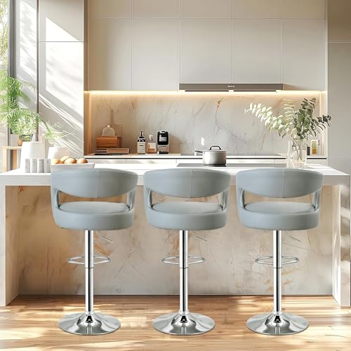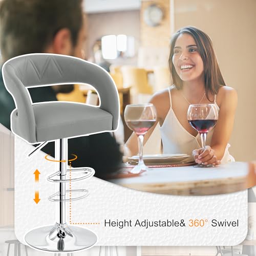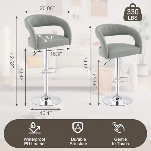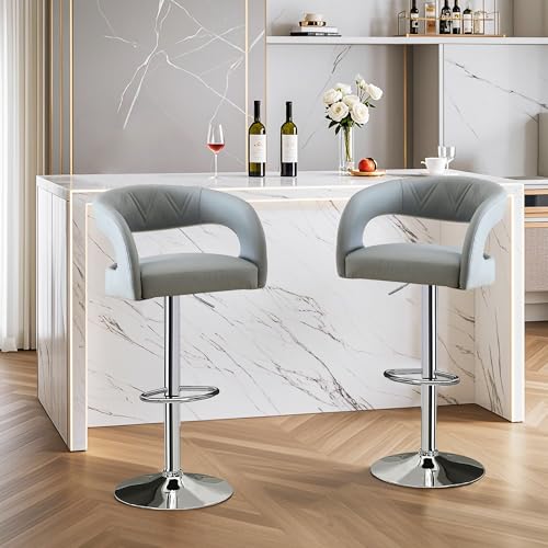 VECELO - VECELO Bar Stools Set of 2 Adjustable Swivel Modern Pu Leather Barstools, Counter Bar Stools with Back and Arms, for Kitchen, Bar (Light Gry)