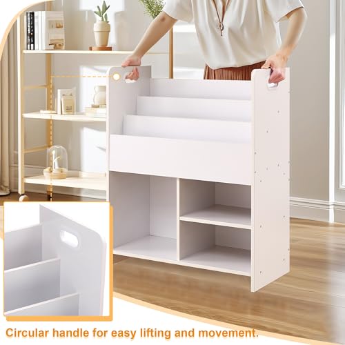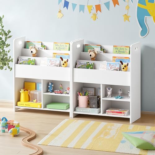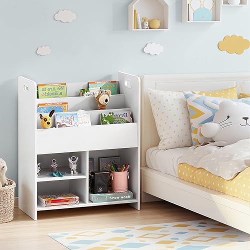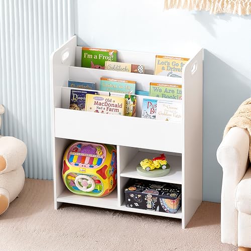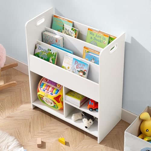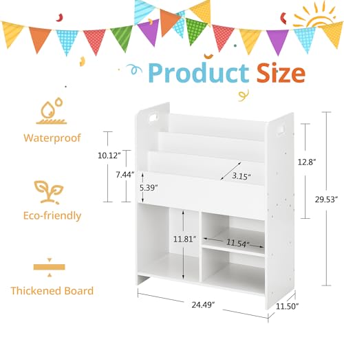 VECELO - VECELO Kids Bookshelf with Toy Storage - Wooden Nursery Organizer for Books & Toys, Easy Assembly Playroom Shelf (White)