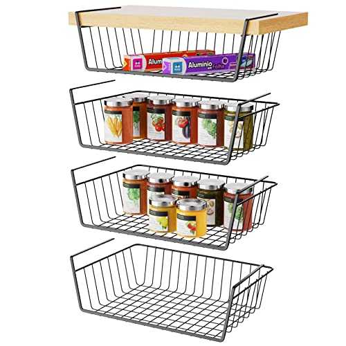 Veckle - Veckle Pantry Shelves, 4 Pack Under Shelf Basket Metal Basket Organizer Under Cabinet Storage with Rustproof Coated for Kitchen Pantry Cabinet Shelves, Black