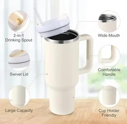 - STAINLESS STEEL DOUBLE INSULATED TUMBLER: Crafted from food-grade 304 stainless steel, our Stainless Steel Coffee Tumbler ensures firmness, rust-resistance, and no metallic aftertaste. With its vacuum double wall design, this 40oz insulated tumbler guarantees optimal insulation, keeping your hot drinks hot for up to 8 hours and cold drinks cold for up to 12 hours.