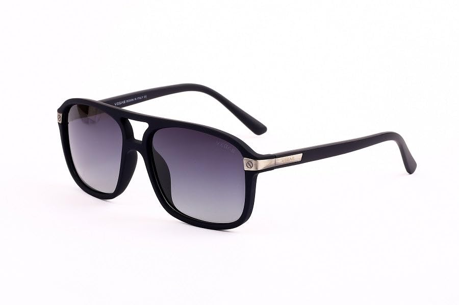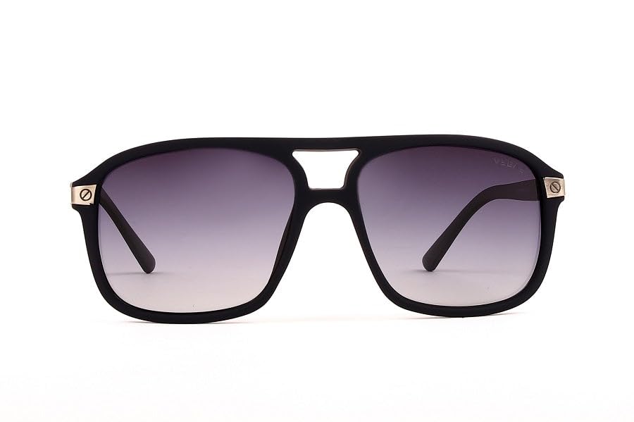 Generic - Vegas Square Frame Sunglasses, Black Frame with Gradient Lenses, Gold Metal Accents