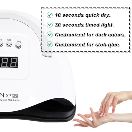 - 4 timer design and LCD display: UV lamp for gel nails with 4 modes (10s, 30s, 60s, 99 seconds), you can adjust the curing time after the different adhesion. The LCD time countdown display is clear and intuitive and helps you remember the time. These features save time and help you complete your nail art task perfectly.
