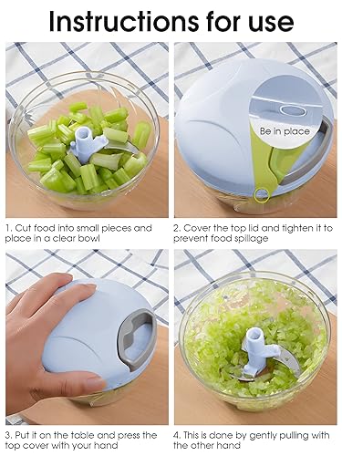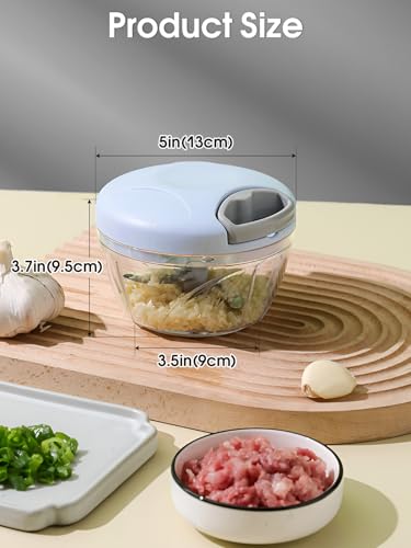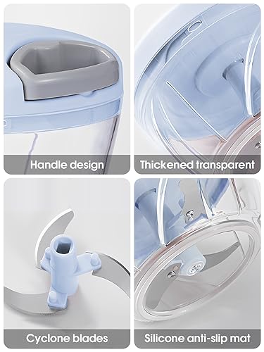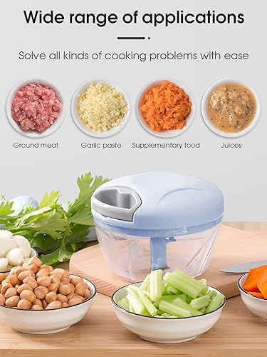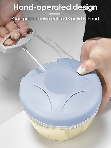 Aestustheri - قطاعة خضروات 500 مل - محضر طعام يدوي متعدد الوظائف - تصميم سحب يدوي مع مقبض وغطاء - قطاعة وخلاط للبصل والثوم والفلفل والفواكه والمكسرات والأعشاب (أزرق)