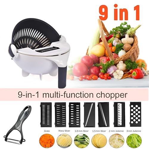 Generic - Vegetable Chopper - 9 in 1 Multifunctional Chopper with Drain Basket Perfect for Efficient Cutting Vegetables and Meal Prep in Your Kitchen