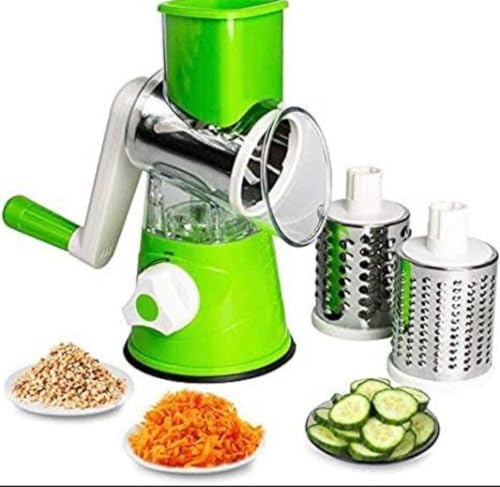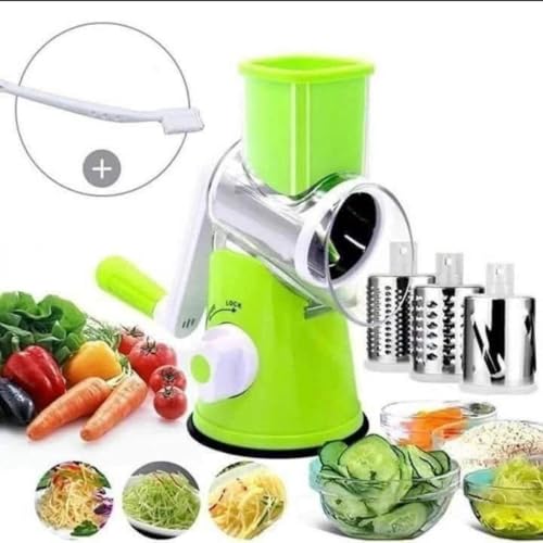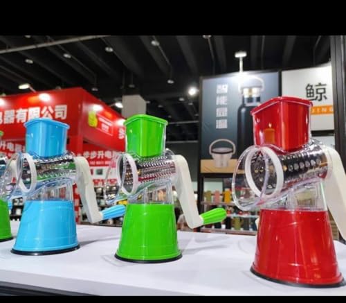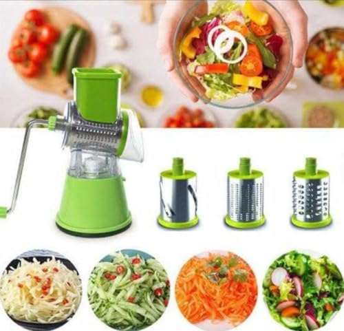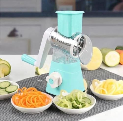 - Rotating Cheese Grinder Vegetable Grinder, Kitchen Mandolin Vegetable Cutter with 3 Interchangeable Blades, Grater and Rotating Slice Cutter for Fruit, Vegetables and Nuts