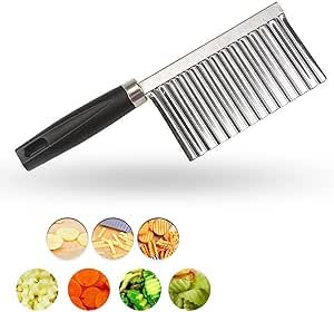- تصميم مموج احترافي: سكين تقطيع من الستانلس ستيل عالي الجودة بشفرات مموجة لصنع شرائح مقرمشة ومميزة بأشكال جذابة