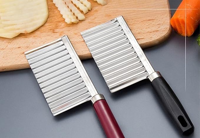 Generic - سكين تقطيع الخضروات المموجة من الستانلس ستيل عالي الجودة لصنع الشرائح المقرمشة بتصميم مريح وسهل الاستخدام للمطبخ العصري متعدد الالوان