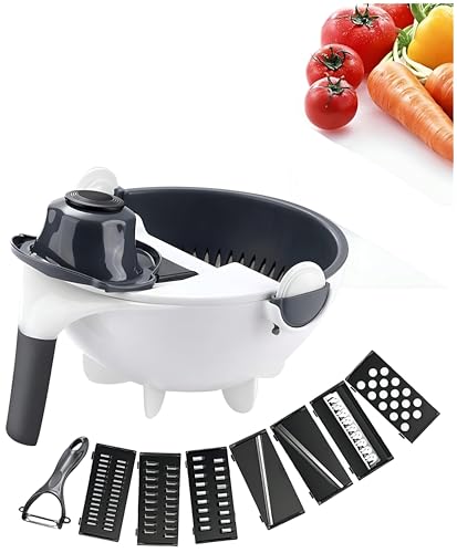 Generic - قاطع الخضار-أداة مطبخ متعددة الوظائف 9 في 1 مع سلة تصريف لإعداد الطعام دون عناء وتقطيع الخضار في المنزل