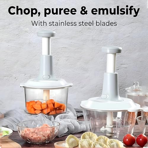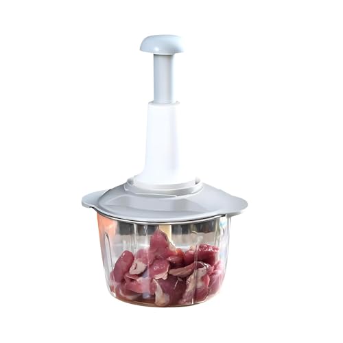 - Why do you need a manual food record? It can save you a lot of valuable time and effort. You can control the size of the feeds by controlling the number of times the thread is pulled. 10 times for rough cutting, 15 times for average, and 20 times or more for mortar. In addition, you can get the ground onion in seconds without crying and chop the garlic without smell. The small drag fork can handle many foods such as ginger, vegetables, fruits, nuts, herbs, carrots, tomatoes, avocados and so on.