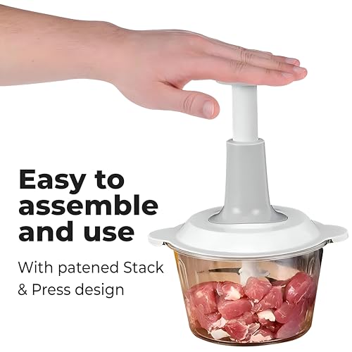 - Designed for versatility, capable of processing a wide array of foods such as ginger, vegetables, fruits, nuts, herbs, carrots, tomatoes, and avocados; easy to assemble, safe to use, and provides fast results by pulling the cord just once to achieve at least 20 cuts.