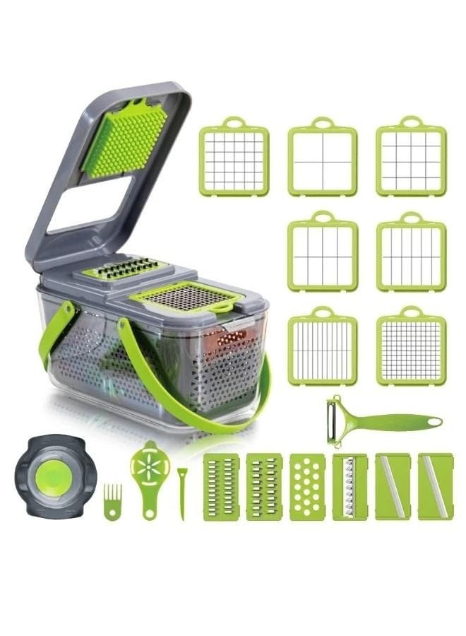 Generic - خضروات 22 في 1 مع 13 طبق من الستانلس ستيل، قطاع قابل للتعديل، قطاع خضروات مع رف تصريف وحاوية تخزين، اداة مطبخ