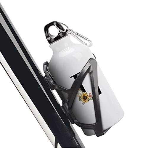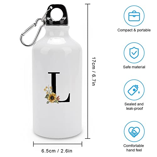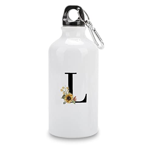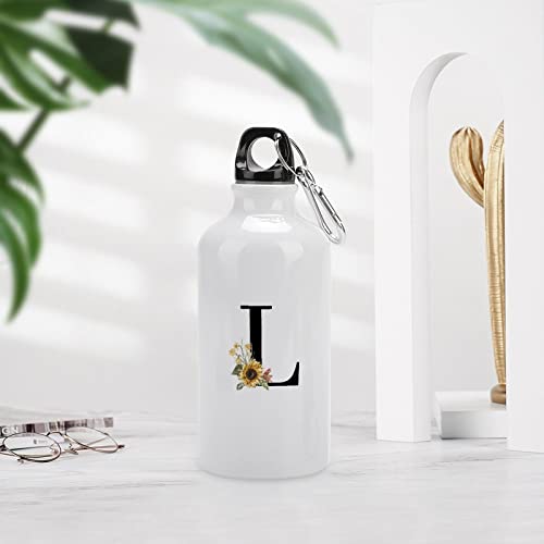 VEHFA - Floral Initial Letter Initial Letters Decor Funny Aluminum Sports Water Bottle Sunflower Black Monogram L Insulated Sports Water Bottle with Carabiner Clip, 14 OZ