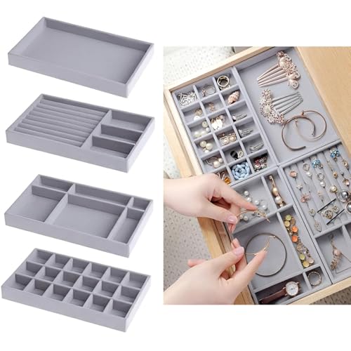 Generic - Velvet Jewelry Box Set - Set of 4 Stackable Jewelry Organizers for Rings, Earrings, Necklaces, and Other Jewelry, Soft Gray Velvet Lining for Gentle Storage