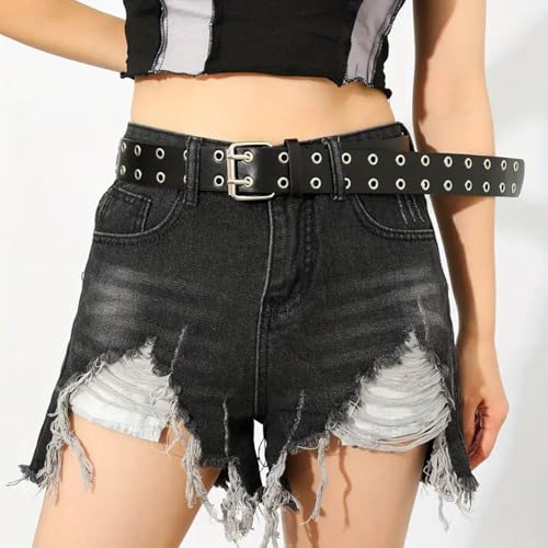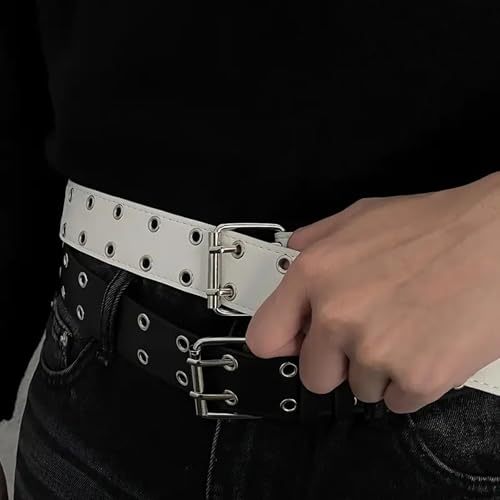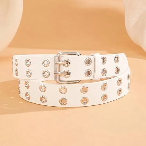 Vemilio Quality Meets Affordability - VEMILIO Double Hole Artificial Leather Waist Belt for Men & Women | Adjustable Punk Rock Style with Eyelets | Stylish Accessory for Jeans, Dresses, Tops | Unisex Fashion Belt